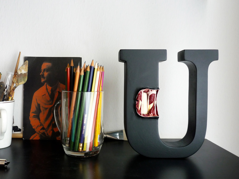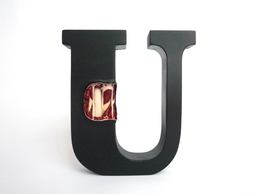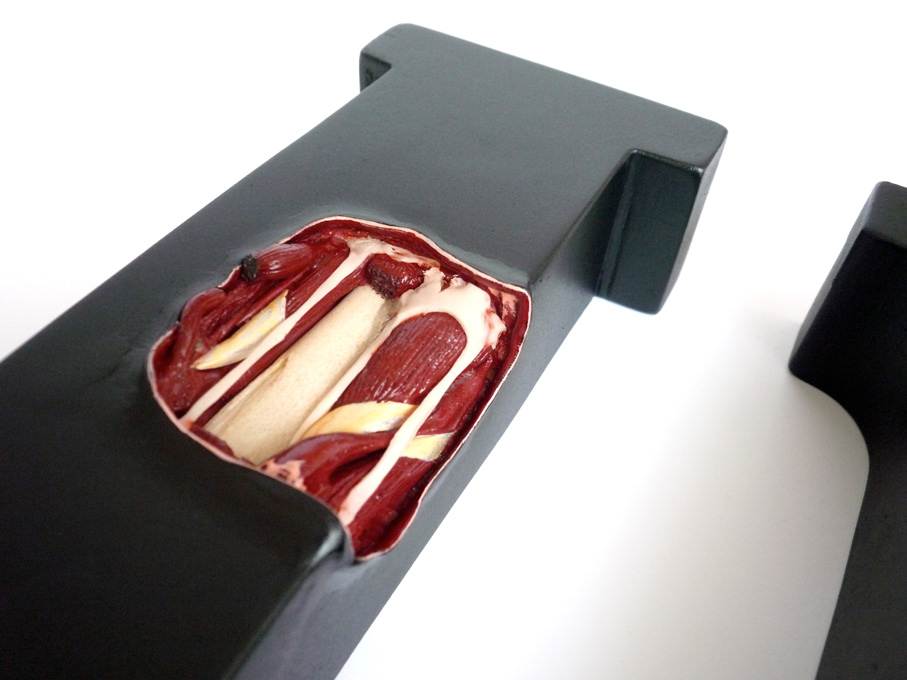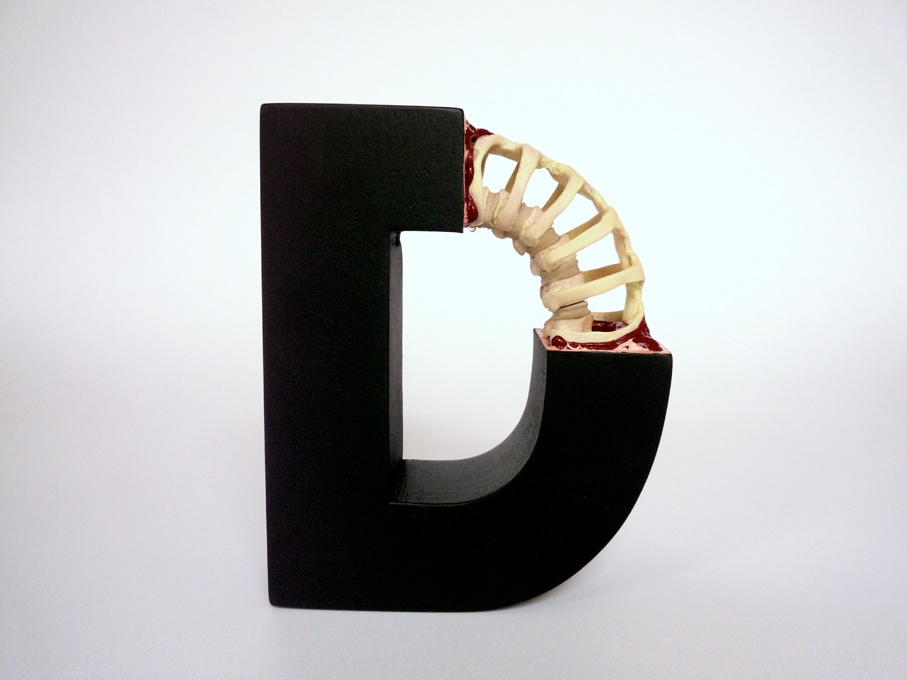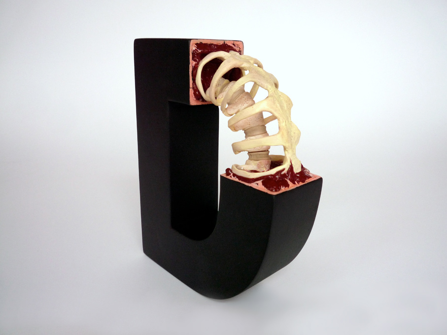 Materials used: wood, polymer clay, turkey bones, chicken bones, wire, acrylics.