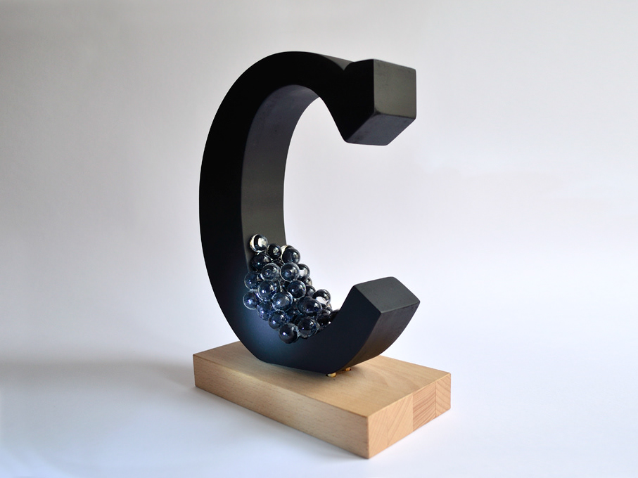 Materials used: Wood, polymer clay, polyester glass casting resin, cold glaze, acrylics, varnish.